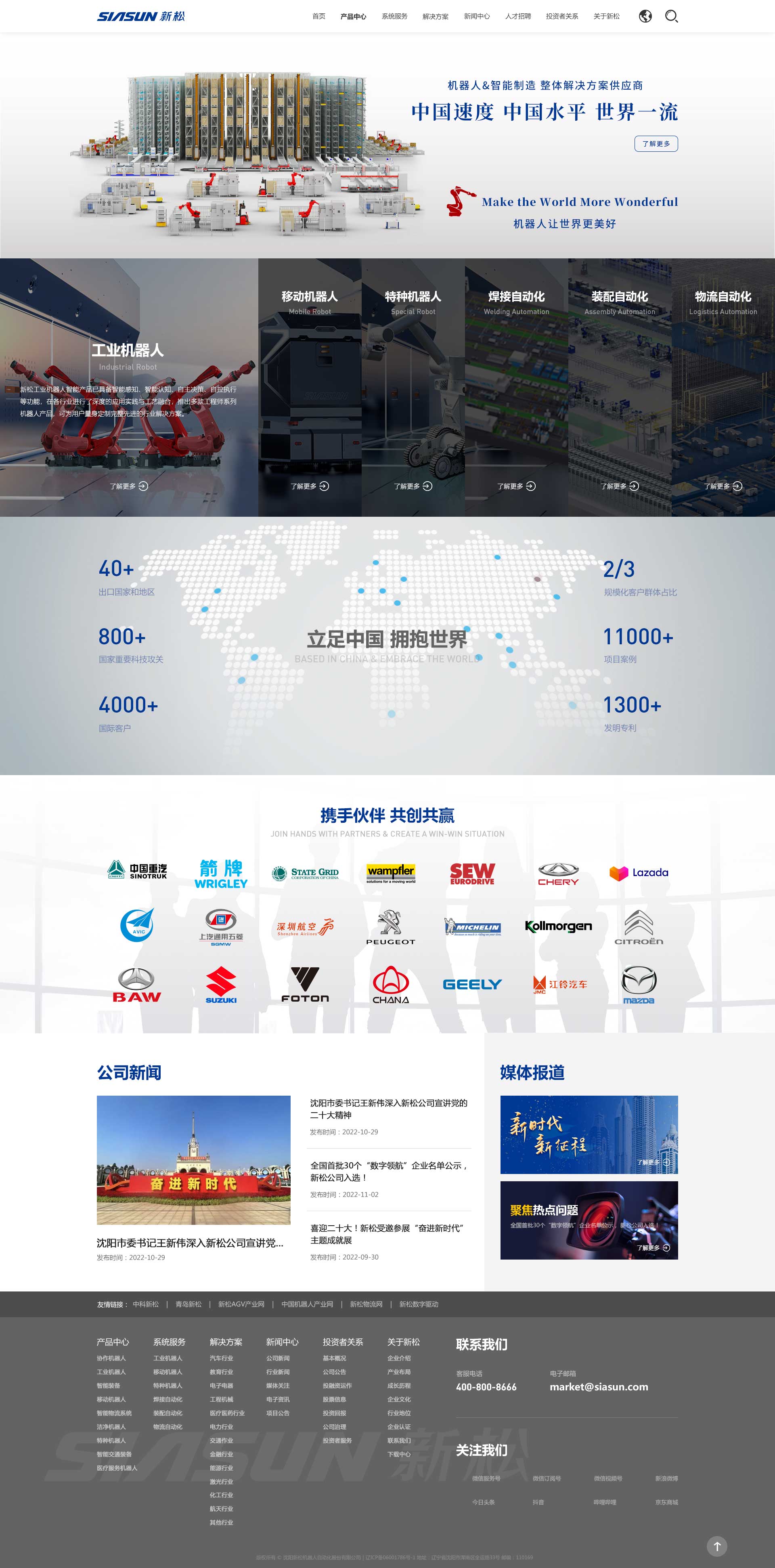 沈陽新松機器人自動化股份有限公司(以下簡稱“新松”)成立于2000年,是一家以機器人技術(shù)和智能制造解決方案為核心的高科技上市公司。新松擁有4000余人的研發(fā)創(chuàng)新團隊,堅持走自主創(chuàng)新之路,完成國家重要科技攻關(guān)800余項,擁有發(fā)明專利1300余項,書寫了中國機器人發(fā)展史上百余項“行業(yè)首創(chuàng)”!